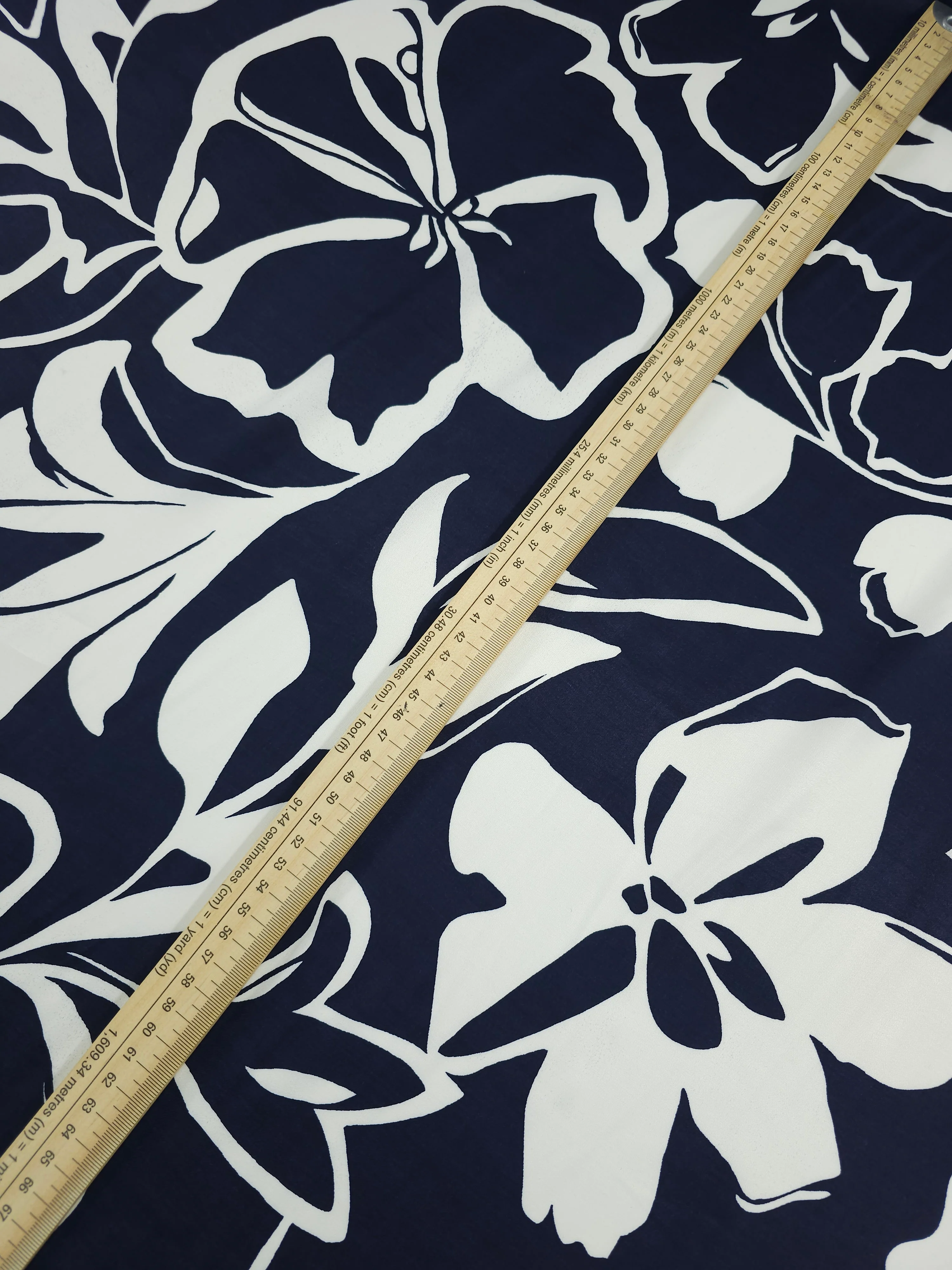 Navy/Off-White Sketch Floral Viscose Satin *DEFECT*