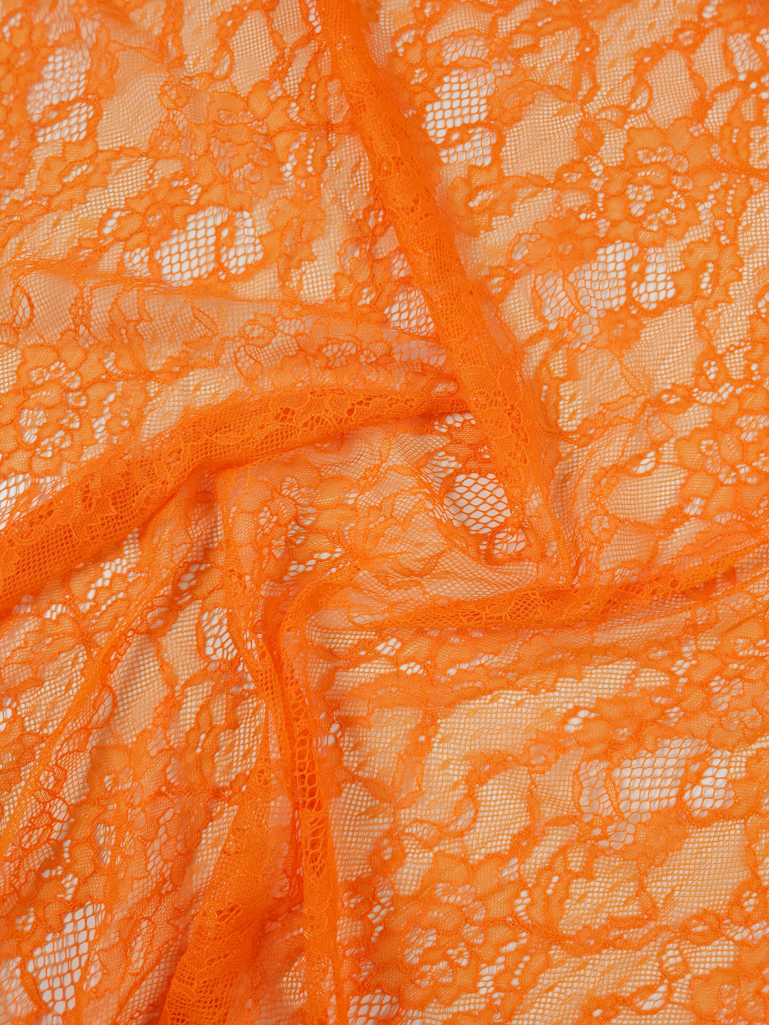 Orange Abstract Floral Mesh Lace